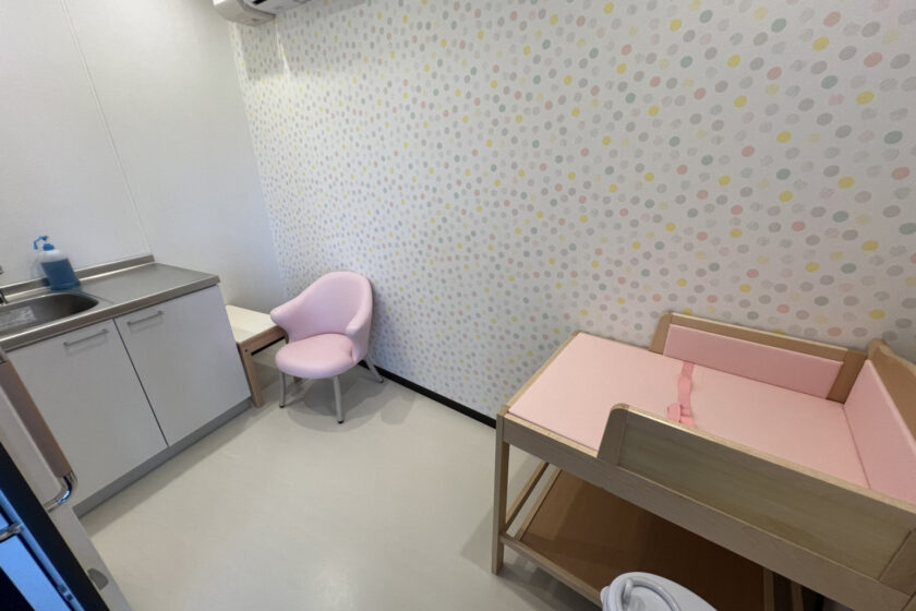室内にはおむつ替え台を設置し、ゆったりとお世話ができる環境です。冷暖房も完備しているため、季節を問わず快適にご利用いただけます。